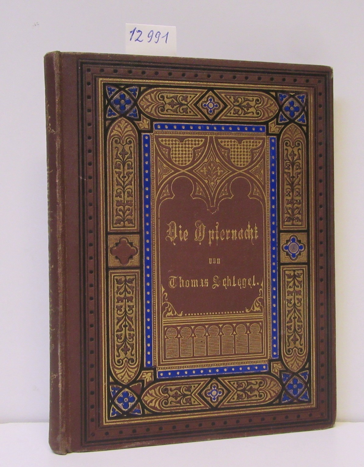 (Braun, mit gotisierender Deckelillustration in Gold, Blau und Schwarz, der "Wilh. Schäfer Dampfdruckerei Leipzig"; deren Etikett auf Vorsatz.) - Zustand: teils Farbabrieb an den Kanten, Name/Datum auf Titel, hinteres fliegendes Vorsatz lose. // Wegen der EPR-Bestimmungen z. Zt. kein Versand nach Österreich.