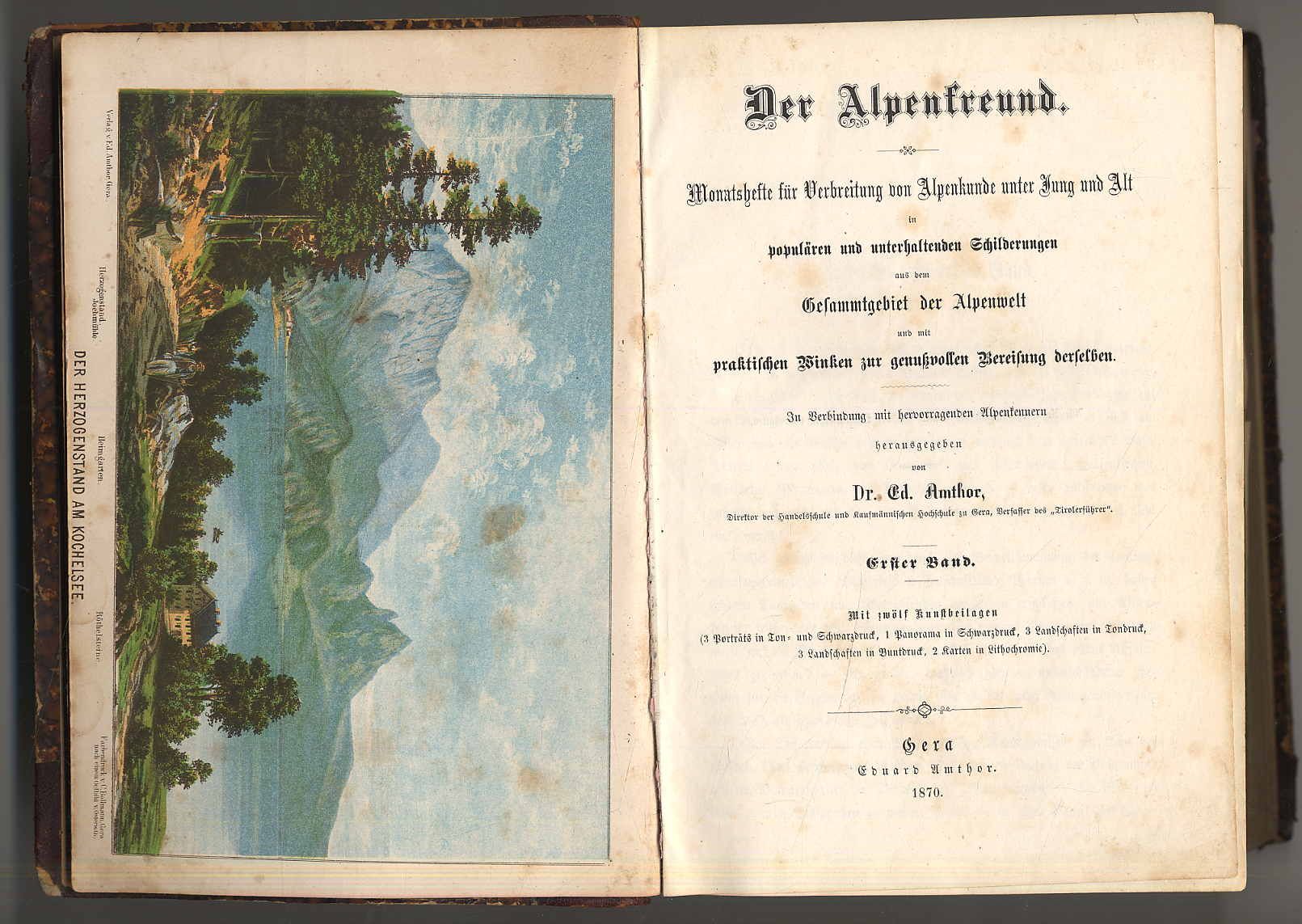 Einband etwas berieben. Mit 31 (von 33) Kunstbeilagen, in Teil 1 fehlen die Karte des hintern Oetzthales sowie die Rundschau vom Margarethenkopf. Durchgehend etwas stockfleckig. 2 Karten mit Einrissen bzw. knitterfaltig. Mit zahlreichen geologischen, historischen, literarischen und volkskundlichen Beiträgen, vorwiegend aus dem bayerischen, österreichischen und südtirolerischen Alpengebiet.