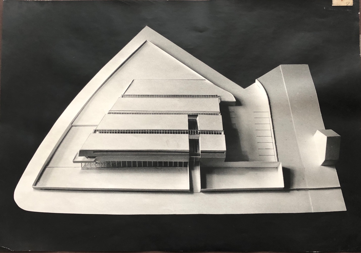 Der Berliner Architekt Hermann Fehling (1909-1996) zeichnete für viele herausragende Bauten in West-Berlin nach 1945 verantwortlich. So etwa für das Studentendorf Schlachtensee (Gebäudeensemble), das Institut für Hygiene und Mikrobiologie der Freien Universität Berlin und das Max-Planck-Institut für Bildungsforschung, allesamt Beispiele für die sogenannte Nachkriegsmoderne in Deutschland und heutzutage als erhaltenswerte Denkmäler eingestuft. Seit Anfang der 1960er Jahre war Hermann Fehling auch Mitglied der Akademie der Künste (Berlin/West). Hier liegt ein Original-Ausstellungsmaterial zu einem der Gebäude vor, an dem Fehling mit seinem Partner Gogel gearbeitet hat. Es handelt sich hierbei um eine fotografische Ansicht zum Entwurf für das Institut für Philosophie der Freien Universität Berlin. Der Wettbewerb wurde letztlich nicht ausgezeichnet, der Bau des Gebäudes nicht umgesetzt. Die großformatige Ansicht war höchstwahrscheinlich Teil einer Ausstellung des Architekturbüros Fehling + Gogel in den 1980er Jahren. Original-Ausstellungsmaterial aus dem Nachlaß des bedeutenden Architekten Hermann Fehling!