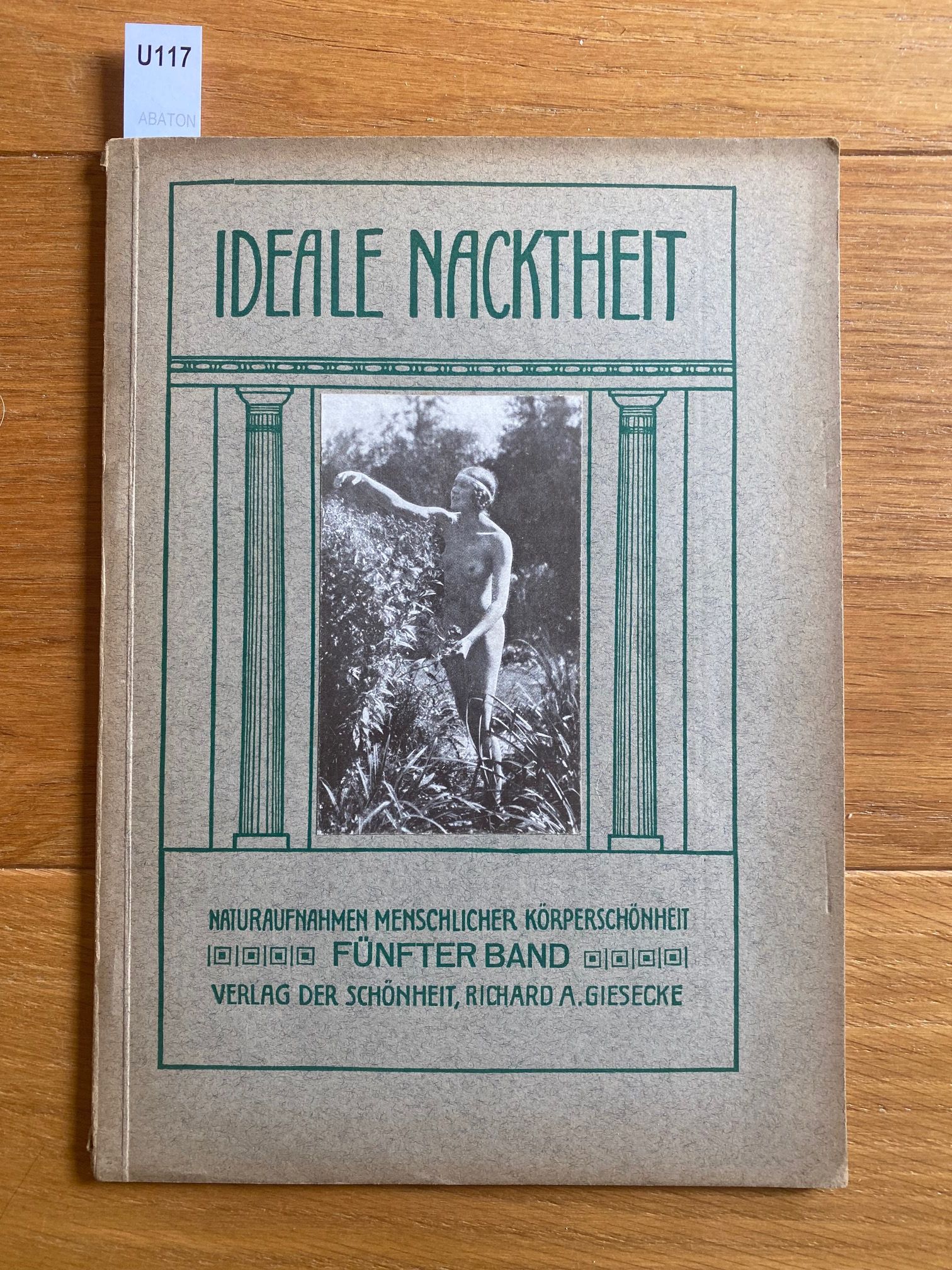 Gr.-8° Nacktheit, Akt, Aktdarstellung, Körperkult - Ideale Nacktheit. Naturaufnahmen menschlicher Körperschönheit. Fünfter Band. 1.-20. Tausend. Leipzig, Dresden, Berlin. (1922). VII, [I] S.. 20 Abbildungen auf Tafeln. Gr.-8°. Illustrierte Original-Broschur. Geringe Gebrauchsspuren, etwas lichtrandig. . Gutes Exemplar mit Besitzervermerk auf dem Titelblatt.