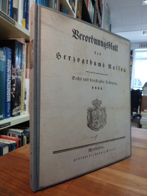 890 S. : 8°, mit Faltkarte: Genealogische Übersicht des Nassauischen Regentenhauses, Schrift: Fraktur, Eigentümerstempel auf Titelblatt gebundene Ausgabe, Pappband der Zeit, Rotschnitt, Teile des Rückenbezugs abgeblättert, sonst gut erhalten